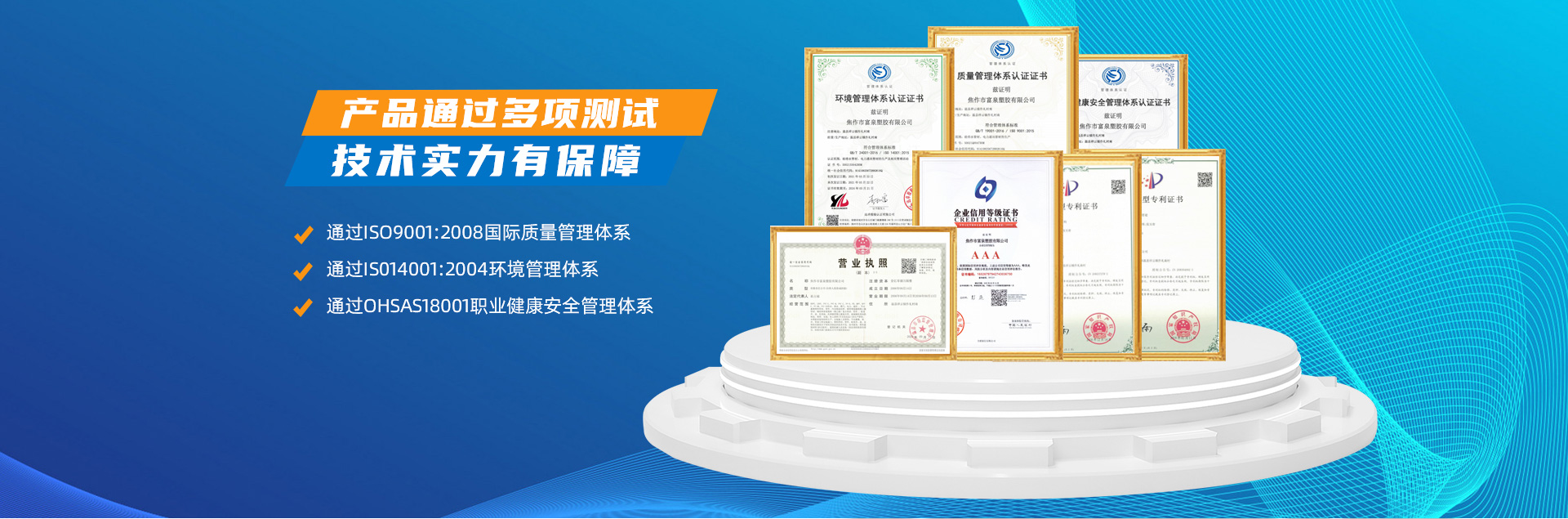 - 焦作市富泉塑膠有限公司,創(chuàng)立于1995年,是一家集研發(fā)、設計、生產、銷售為一體的大型管材企業(yè)。公司位于太極故里、黃河之濱一一河南焦作溫縣。公司占地128畝,現有職工210余人,其中具有中技術職稱的19人。生產、檢驗設備58臺(套),包括PVC實壁管生產線11套、PE實壁管生產線12套、HDPE雙壁波紋管生產線6套、PVC雙壁波紋管生產線5套,檢驗設備14臺(套)。主要產品有:Φ20mm-630mm、各種壓力規(guī)格的PVCU、PVC-M、PE給水管材,PVC-U節(jié)水灌溉管材,HDPE燃氣和礦用管材,DN200-800mm的HDPE、PVC雙壁波紋管及各種噴灌、滴灌工程材料。承接大中型市政供排水、飲水安全及節(jié)水灌溉等工程?! 「蝗苣z公司重視產品的質量、安全、環(huán)保和節(jié)能,在同行業(yè)中率先完成了“新華節(jié)水產品認證”,全方面通過ISO9001:2008國際質量管理體系、IS014001:2004環(huán)境管理體系和OHSAS18001職業(yè)健康安全管理體系的一體化導入,并建立起規(guī)范的現代企業(yè)管理體系。公司以“質量”為先導,采用質量跟蹤、多環(huán)節(jié)把關的方法,組建具有行業(yè)水準的企業(yè)技術檢測中心,常年委托水利部節(jié)水灌溉設備檢測中心、河南省產品質量監(jiān)督檢驗院對產品跟蹤檢測,并由中國人民保險公司承保產品質量。公司連續(xù)多年被河南省水利廳確定為“安全飲水設備、節(jié)水灌溉設備”定點生產企業(yè),并獲得“中國名優(yōu)產品”“質量、服務、信譽AAA企業(yè)”“河南省**產品”“河南省水利企業(yè)”“河南省守合同、重信用企業(yè)”等榮譽稱號?! 「蝗苣z公司堅持“用戶為上”的服務理念,長期以來,全方面關注客戶價值,不斷提升服務水平。服務隊伍常年為客戶的產品設計、施工、安裝提供合理的方案和全程細致、周到、**、快捷的技術服務。公司自成立以來,一直堅持以人為本的宗旨,塑造企業(yè)形象,并致力于新產品的開發(fā),憑借雄厚的技術開發(fā)能力,先進的工藝制造流程,嚴格的質量管理保證體系,優(yōu)良的售后服務網絡,已成為河南省大的飲水、灌溉及排水管材設備制造商。產品暢銷全國,而且還以公司雄厚的綜合實力在業(yè)界中占據著重要的地位。